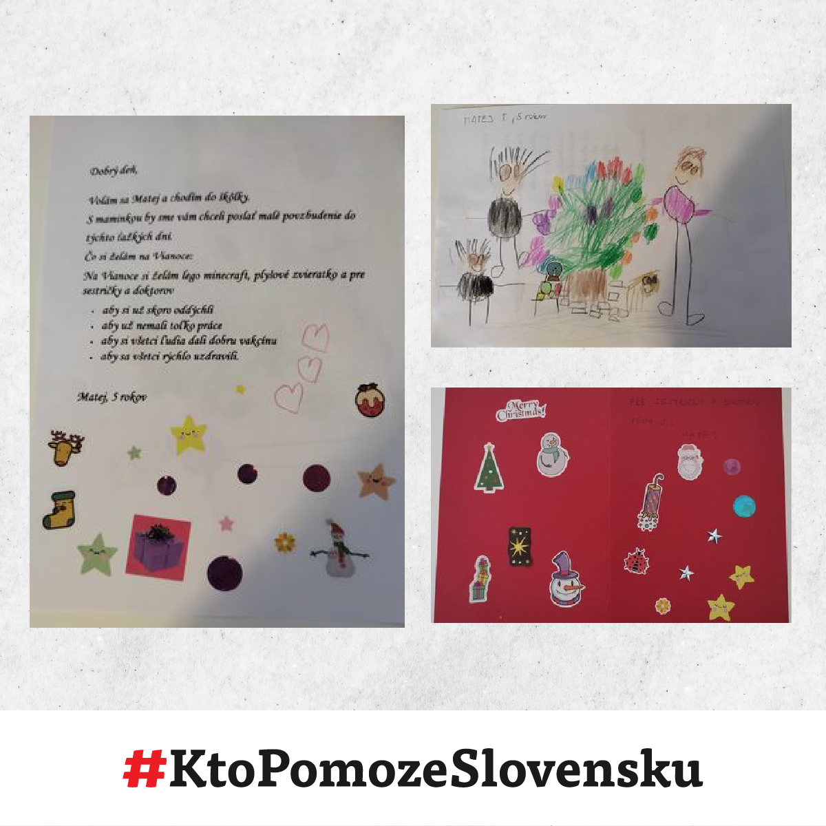 Iniciatíva Kto pomôže Slovensku pomáhala v prvej vlne zdravotníkom a zdravotníčkam zvládnuť pandémiu koronavírusu a posielala im podporné energetické balíčky. Nakoľko je situácia podobná a zdravotníci a zdravotníčky čelia v prvých líniách už tretej vlne, potrebujeme sa opäť spojiť a ukázať našu podporu a poslať im do nemocníc okrem energetických balíčkov aj pozitívnu energiu. Práve preto v spolupráci s Kto Pomôže Slovensku hľadáme dobrovoľníkov, ktorí by posielali do nemocníc listy vyjadrujúce dôveru a solidaritu so zdravotníkmi a ľuďmi v prvej línii.