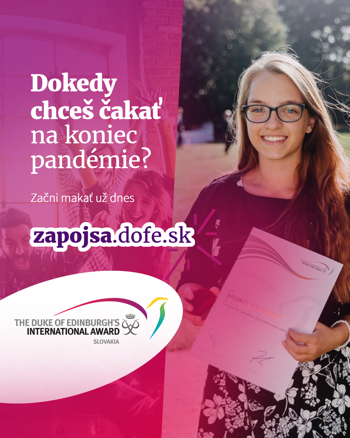 Jednou z možností, ako sa dnes vysporiadať s dôsledkami pandémie, je aj zapojenie sa do programu DofE. Ten historicky prvýkrát prináša možnosť zapojiť sa aj na jar a dostať tak intenzívnu podporu inšpiratívneho mentora, DofE komunity a najnovšie aj novo-vyškolených online Vedúcich.
